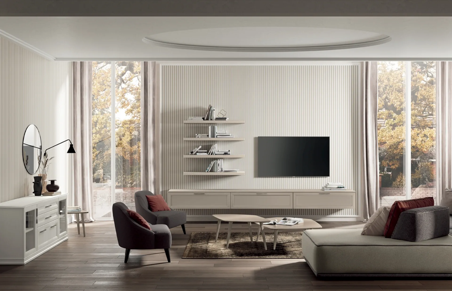 Colombini Casa mette a disposizione originali modelli di mobili soggiorno, diversi per stile e conformazioni, texture e elementi: scopri nel nostro showroom l'Arredamento Casa dei migliori produttori. I mobili soggiorno in melaminico dalle linee classiche come il modello in foto sono veramente eclettici e capaci di allestire il living usufruendo al meglio di ogni angolo. Lasciati stuzzicare da una ricca gamma di arredi per la zona giorno e potrai trovare la parete attrezzata che fa per te. Visto che il living deve essere uno spazio pratico e bello a vedersi, sono necessari alcuni arredi belli e pratici come le Pareti Attrezzate.