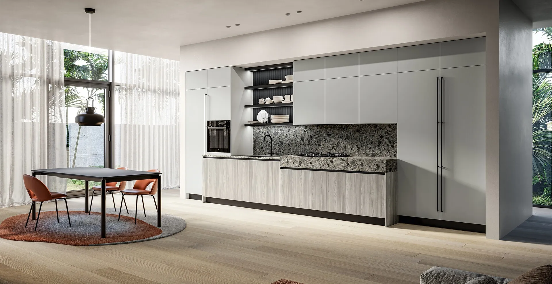 Ti aspettano differenti proposte moderne in linea per la cucina, ideali per chi cerca uno spazio accogliente, semplice e immediato ma moderno nello stile. A rendere la Cucina Moderna lineare Cloe 03 di Arredo3 una tra le più belle soluzioni della firma, oltre ai suoi bellissimi motivi, è il materiale: è costruita in laminato per garantire comfort e qualità nel tempo. Se sei alla ricerca di una soluzione dalle linee essenziali, caratterizzata da un design più sobrio, ti suggeriamo di orientare l'acquisto verso le Cucine Moderne della firma Arredo3.